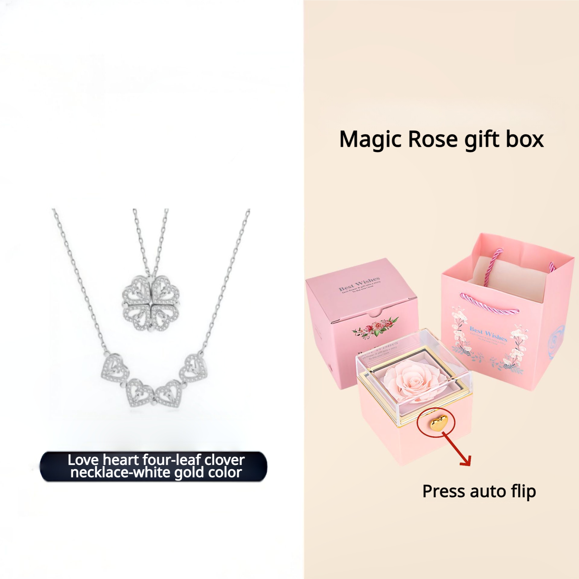 Four-leaf clover lucky heart necklace
